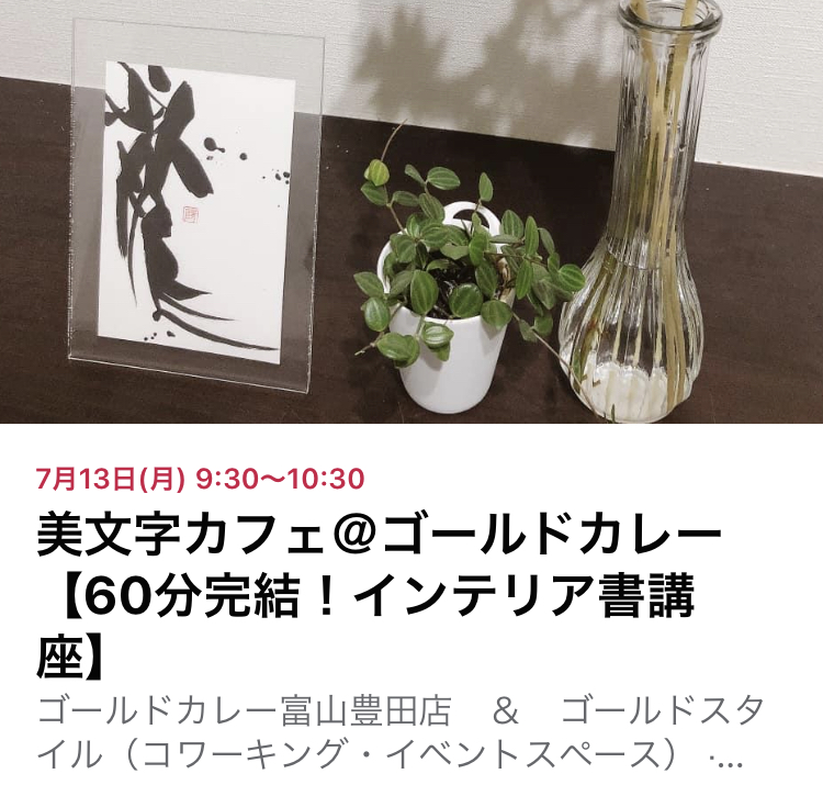 7/13(月)美文字カフェ@ゴールドカレー【60分完結!インテリア書講座】